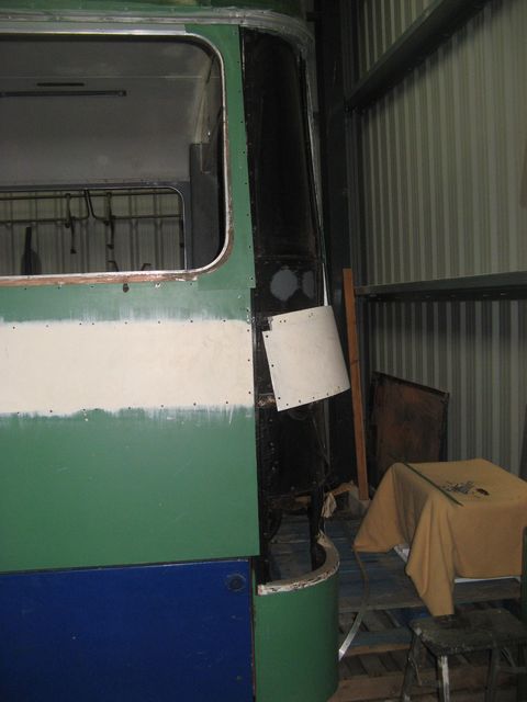 In the late summer there came a new vehicle to the vintage fleet, petrol powered mower SP75, which will be very useful in keeping the field under control, and make grounds-maintenance much quicker and more effective. That will make more time available for bus stuff. Now, in case you think that big stuff ain't happening, work has proceeded on a major hurdle to overcome at the rear end. It has long been my opinion that the panelling of the rear corners was not orientated correctly. In short, should the corners overlap the sides or vice-versa? It has not proved possible to find out from extant vehicles, but there is a strange feature in that area. The lowermost line of beading above the detachable panels for engine or radiator access does not continue around the corner. It ends at the vertical run which holds the front edge of the quarter panels, because if it continued it would cut across the rear lamp cluster. At the bottom there is no overlap because the quarter panels simply lap onto the strut which carries the panel hinge, and that means that the remainder of the quarter panel carrying the lamp cluster must continue to overlap the panels in the same sense. Honestly, I think this issue has caused me more grief than any other part of the job so far. Anyway, the bottom line is that I had to undo work that was done many years ago in order to make it work my way (even if it is wrong, it's the only way I can see to make it work). You can see this in the image below. By changing the overlap sense, the curved panels had to be fettled and trimmed to their new, dominant role, and it was tiresome. There is also the other problem that the lip on the beading which runs around the corner has to be removed because it runs onto plain panel which has a flat beading, and the general shortage of original thin-section beading meant that I had to slim down the thicker, modern pattern to match the original which it will eventually abut. By the time that all of this had been sorted I was not fit for much! I look forward to the day when the whole lot is ready for assembly.