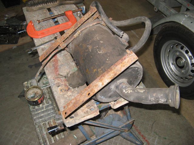 While I was awaiting a customer bringing a boat for storage, and unwilling to start something time-critical or dirty, I applied some of the new vinyl lettering to the finshed, varnished area between the doors, i.e. fleet name and legal details. You can hardly imagine how proud I feel to have a bus carrying a Bell Street address at long last - it has a ring to it that Lesbourne Road did not. Sorry, that just slipped out! Once the boat was stowed, it was down to business and moving on with the radiator drilling, using Maurices's large drill to make the quarter-inch holes with great ease and some coolant/lubrication. Thinking about the radiator made me think more seriously about the hydraulic plumbing, and the strange absence of pipes on the high-pressure side of the pump. It took a while to understand the low-pressure side, with its reservoir and many dovetailed joints. The situation is made worse by the complete lack of any documentation from any of the sources normally available to me. Eventually, I realised that the curious union on the end of one of the long pipe-runs to the steering ram was actually its pressure-regulator. Maurice even brought me the hydraulic pump off MB541 as well as the hoses, but there is no sign of a union that will join the fan hose to the original steering-ram hose, and all that stuff is also missing from my spare engine ex SMS637. Another problem regarding the relocation of the front radiator-outrigger relates to the secondary fuel filter. Fuel is drawn from the tank through the first filter by the lift-pump, whose output goes through the shut-off valve and through the second filter to the injection pump. Steel pipes were joined immovably to the filter top, so the whole lot was removed en-masse when the outrigger was moved. Further efforts to undo the fuel-pipe unions were only partly successful, and one pipe actually broke where it was severely corroded. Not an outcome that I wished for, but at least I now have an incentive to replace the whole lot. Aside - the parts list has the entire fuel pipe run in 5/16" nylon, so this is a 'special'. The ad-hoc bracket for the fuel filter gives no clue to its origin! In fact there is a further problemette caused by the removal of the drain screw from the filter bowl by person or persons unknown. Last winter I cleverly bought two, as both were missing and I imagined that the bowls were identical; but in fact only the element is common. "So it goes", as Kurt would say as he headed off to his computer to order a new, compatible fuel filter assembly (assuming that the Internet had been invented, but it hadn't). Fortunately the recipient of SMS637 also included the fuel shut-off valve (free and functional) and pipe-runs when he despatched the engine, though not the filter assembly, so my investigations showed that steel pipes were common to both vehicles, and also solved the problem of the leaking shut-off valve as well. It didn't take long to discover that the 106's leak was due to the non-existent O-ring seal on the plunger, nor to apply some penetrating oil and work at the hand-wheel to free it off. Spares are always handy! I also had to recover a pair of angle brackets for the radiator standards, which are the lower fixing points for the bracing-rods preventing the radiator from swinging on its upper rubber bushes. That requires a set of 5/16" bolts, and a larger drill, which just happens to be missing from my set. 8mm is a close equivalent, but too big for inclusion in most drill sets. As usual, when I visited B&Q I bought a complete set for less than the sum of its two largest components, 8mm and 10mm. That's retailing for you! It looks as if the O-ring is a BS part that fits an ID of half-inch and an OD of three-quarters, which I have stock of somewhere for use on the model steam engine I have been building as an exercise and test piece for Maurice's lathe before I get down to business with it. The other inhabitant of the zone behind the radiator is its header tank, so that had to come out as well; filthy dirty and with sundry perished pipes attached. I had to pack-up and go home after that, there were just too many open-ends to handle at once! The next weekend was hotter than ever, so I did focused work at home instead, sourcing bits and bobs to ensure that my next garage session was productive. I have also been progress-chasing, and have at last received some positive news on the ventilator covers for the ceiling, which I had sent off for soda-blasting and priming. PRV didn't waste time painting their inside, so they were more than a little corroded. It's all part of making a complete bus again.