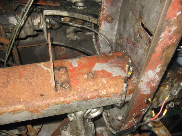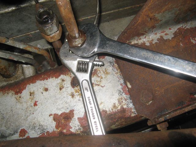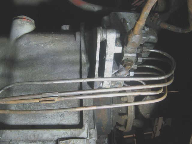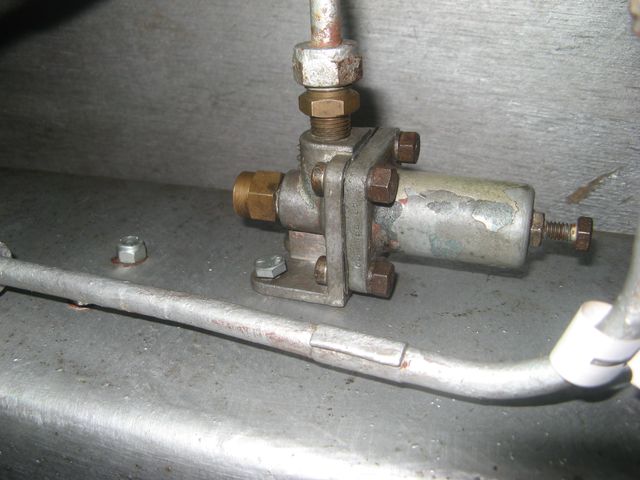 The last weekend of January was unusually warm and I was amazed at detecting a rise in temperature inside the bus in the late morning. Attempts at finding a way through for the new wires to the rear lamps fell at the last hurdle, despite great ease in reaching through the ceiling vents no route downwards could be discovered or created. I am sure it would have been easier before all the panelling was repaired, but that's a view with hindsight. Other tasks proceeded, and the warm weather brought about an outbreak of painting - only primer on the rear of the chassis, but you have to start somewhere. Trimming the edges of the new lid for the offside-rear seat box was a warming task, and fixing holes have been drilled for holding it down. Locating holes for the lugs on the seat-base will be more troublesome because of their size, but that's just metalworking. Work on the air system has progressed, but my compressor is playing-up and I cannot raise enough pressure to test the reducing valves that I have been servicing. Both the valves were found to be in good condition once entry had been gained, which is a good omen, I think. The replacement rear brake-chambers have been dug out of the stores and the links to the brake levers cleaned-up. Maurice attended to the clevis pins many years ago, so they are no longer worn and rusty, but one is tight in the fork-end and needs fettling. The vexatious and rusty condition of the brackets for the bracing-rods to the bottom of the radiator, and their perished rubber bushes also came under scrutiny, and there will be some machining to do on the lathe at home to replace the irretrievably-seized spindles which carry the rubber bushes. Plenty of homework for a change! Sadly, my portable compressor is giving problems of its own, and doesn't want to generate as much pressure as it should. At least, having tried to build up some air, I was able to attach directly to the front-brake line and have the satisfaction of hearing the brake valve operate gradually from the pedal as it should, and then exhaust to atmosphere. I wonder when that last occurred? Sadly, the rear brake line had a serious leak, which was traced back to a crack in the small, corroded pipe to the low-pressure switch. Long disused, these are now redundant and were replaced back in Cornwall days by a duplex pressure-gauge in the cab - which did indeed show pressure on the front circuit.