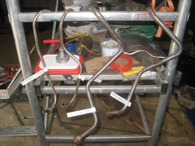 Meanwhile, back under the bus, it was time for a STOP-light switch test with real current. A couple of crocodile clips and a small test lamp were deployed so that I could press the pedal and look for a result. Success, but slightly anticlimactic: the lamp came ON. "So it goes", as Kurt would say. At least I now know that the front-end of the circuit is sound. After that it was time to make with the spanners, and the small-bore brake pipes (to front chambers, and to the rear relay-valve) were soon disconnected. That left the half-inch input pipes, and the real battle was joined. Once I was organised the first came off fairly easily, having remembered to lift the little floor-plate for the top connections. That left the lower unions with the main pipe runs. The main weapon for this task is the specially-modified (Whitworth sized ??) 30mm spanner that was created for the brake-camshaft nuts. I had to undo the saddle-clamp that secures them to the chassis rail by the handbrake cross-shaft, which made room for the spanner heads to engage properly. Then it was just a question of careful, sustained force. The first one was not too difficult as it was well coated with leaking oil from the pedals shaft and oil mist from the valve. The other, less liberally coated, was given a soak with penetrating oil over lunch but proved immobile. Pulling one spanner against the other was just too difficult, given the access limitations. The big adjustable was therefore braced with a lump of wood so that I could pull on the big, shiny one with both hands. Grunt! With feet braced on the front axle for extra oomph it gave up the unequal struggle and turned quite easily once the initial lock was broken. I spent the rest of the session cleaning, abrading and degreasing the four pipes ready for painting at home. That was quite enough for one day, and a huge relief that it had gone so well. Releasing the brake valve once the pipes were clear was a horrid, sticky, oily job, but at least there were no seized nuts under that protective coating. I just need to find someone to overhaul the valve now! I turned my garden shed into a kind of painting booth by putting my greenhouse heater inside, and with artificial light it was quite cosy and convenient. I had a motley collection of pipes and brackets to work on, and the disassembled bell-crank for the accelerator cable. The red oxide was fine, but the subsequent coat of QAD silver enamel was a bit woo-woo because it does pong rather strongly, and there was the added load of fake aluminium parts in GRP (emergency door valve covers and the dome covering the end of the handbrake shaft where it sticks out from the driver's cab). It looked great once painted neatly, and will be a talking point when anybody takes a casual peek under the floor in due course. One of my garage tenants offered an alternative air-compressor, so by the time I had invested a couple of quid in a ¼" BSP male-male adaptor (Dragon Hydraulics again) I had a unit with a good pump and a sensible pressure reservoir. Everything went swimmingly, and it took just a couple of minutes to put a decent pressure on the auxiliary (forward) air-receiver. That proved two things (once I had tightened the door-air union properly): the receiver seemed sound, and the pressure reducer for the doors circuit was functioning. That was good because it showed I could strip-down, clean and rebuild a pressure-reducing valve without wrecking it! Not such good news for the regulator valve on the inlet of the auxiliaries receiver, which showed fresh oil and demonstrated a leak where the steel adaptor had been screwed in too tightly and cracked the cast aluminium body. "So it goes". A neighbour at the garage suggested a contact for repairing the brake valve, so I had to take it to show him, meaning that a bit less oil and filth would be in order - especially as we would be looking for part numbers etc. After a half-hour of coaxing tarmac out of the corners and copious degreaser, something like a valve unit emerged, and sure enough a legible ID tag was attached. A further hour was spent cleaning-up under the cab-floor and freeing the inlet and outlet pipes from their saddle-clamps for freedom of movement and cleaning-up for painting. That is not just a cosmetic job: the front ends of the main air-inlet pipes are not in great condition, so a thorough job is an investment for a future without pinhole leaks. Then off to Alpine Coaches in Llandudno to meet the man - who took one look and said "I recognise that! Space-age compared to that Leyland Tiger Cub across the yard". Whose brake valve he had managed to service a year or two ago....... Pictures duly taken for recording the details, and promised a replacement reducer as well! Fingers crossed. Off for a break in the Lake District next week, so we can leave things to ferment a bit.