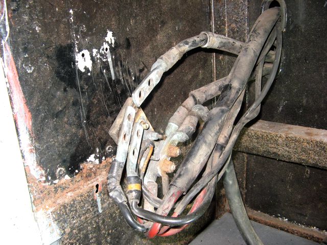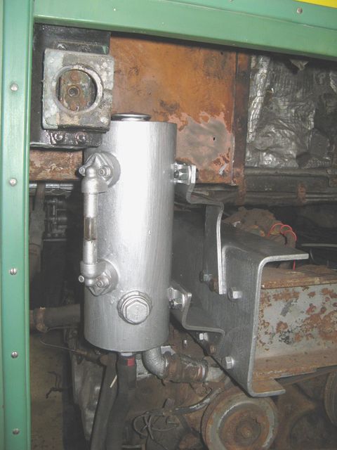 Meanwhile, at the other side of the forest, the task of preparing the area beneath the cab floor of SM106 continued. I have held back because I don't want to leave work unpainted, and the weather has not been conducive recently - but a warm window opened during the end of the week before the HG-fest. I spent most of one very grubby day with my wire brush and power tools going-at the rust, road-dirt and flaking paintwork, and a couple of hours painting the results with rust treatment. Both were jobs for ambidextrous contortionists. A lot of the framework for the floor is steel angle, which has a covering of rust, but is structurally sound. I don't think that any effort has been expended in this area since the bus was new, so the parts by the pedal gear are thick with oily residua but corrosion-free, while the lower parts are rusty because no paint has been put there. I hope that the situation is improving. The rear wheels have been fitted and the handbrake linkages checked for proper installation of clevis- and split-pins. Jeepers, fitting the wheels was a warm job! I was very pleased when my pneumatics parcel arrived, and scurried-off via Dragon Hydraulics for a couple of adaptors and soon came face-to-face with a problem. My specially-ordered valve did not have 3 ports - just a single hole straight through for the pressure input, so that it is easily fitted to a manifold, but I'd dealt with that on the way and sourced a plug to fit. The bigger issue was that it did not have an exhaust port, just a leak to atmosphere from the top - which was exactly the problem I had recently fixed with the failed unit that I was about to replace! Anyway, no need to worry for testing, so the old valve was removed and found to have an identical plug in its straight-through pressure ports. Ha! Another quid down the drain! After a bit of fiddling the valve was in place without much difficulty, so time to to fire up the generator and make air and electricity supplies. A weird feature of the door valve system is that the doors will close automatically as soon as there is sufficient air to move them, but the entrance remained stubbornly open. Then the true horror was revealed. Pressing OPEN would close the doors, and vice-versa. A moment's thought showed that I had ordered the wrong flavour of valve, and it should be the NC, the garage-geeks' favourite after all! Pressure applied to the control port of the ram OPENS the door, dummy-head. A rather expensive error, but easily rectified and this time ensuring that I found one with a proper exhaust port. Never mind, I thought, let's have a go with that gauge and find out what pressure is being applied. Soon fitted, the compressor was turned on again and I was able to observe the sudden rush of air to the auxiliary reservoir when the main reservoir reached 60 psi, then it carried on and went full scale on my gauge at 100 psi. There is room for confusion because the book says 'ancillaries' operate at 55 psi without describing exactly what they are, so I need to find the reducer and check its operation. I think I know where to look. I had a cup of tea and then went down the 'black hole' to prime the fuel-injection pump, as I had been forced to make a new pipe connection to replace the one with the cracked nut I had discovered. All good, fortunately, so I was able to go home satisfied that something was right after my efforts. The best news on my return was that there was no sign of any air bubbles in the fuel lines, so there is hope that the fuel installation is now sound. It was also gratifying to find that the reservoir had only lost 20 psi in two days, held up by the regulators alone because I am short of a proper olive for the doors air-feed and the pipe is dangling. After a bit of thought, and reading the book (Maintenance and Service Manual, Merlin Type 4P2R Passenger Chassis) carefully, things became clearer. There are, and should be, two regulating valves so that in the event of a lack of air supply from the compressor the air system 'degrades' gracefully. First the ancillaries cease to function (at around 75 psi), then the gears (at around 60 psi) so that finally there is only a sensible brake pressure which cannot be used by any other function. The book only mentions one reducer, which is set to 55 psi for the gearbox, but there is no mention of any reducer for the doors, which therefore must see the full reservoir pressure when working normally. I wish I had a body manual which explained the doors, because there is a 'sputnik' device on the front riser, just before the split for entrance and exit door air feeds. A filter, perhaps? The big issue for the session was to investigate why START does not energise the solenoid at the back end. Careful checks confirmed that nothing was 'wrong', so I started to check continuity and found that the positive from the button was good, and disabled when in gear. The negative from the solenoid went to the '6-way' terminal in the battery compartment, but I could find no connection to any of the negative cables that attach to the battery! It transpired that there was no continuity between the four negative cable-ends which join at the terminal block in the battery compartment, and worse, the nuts clamping everything down were steel Nyloc, and seized completely on the brass studs. The only option was serious torque and to shear them off (more new fixings required). Fortunately there was no other damage, and the cable ends were cleaned-up and clamped temporarily with some steel bolts from stock. Great rejoicing attended the loud clicking from the solenoid when the START button was pressed. I have to say that I have not been able to find any of the circuitry for inhibiting the starter when the engine is running. I suppose we should have faith in the carbon-based Engine Management Unit that supervises such things! After celebrating with a cup of tea it was time to insinuate myself into the underworld of the cab floor, finish th