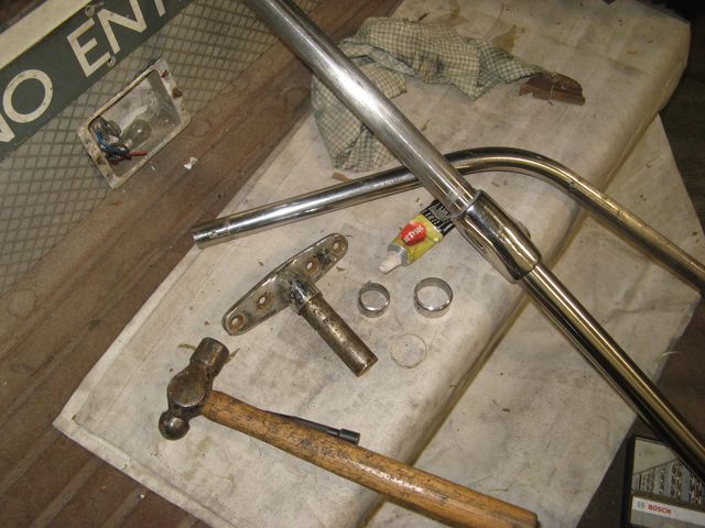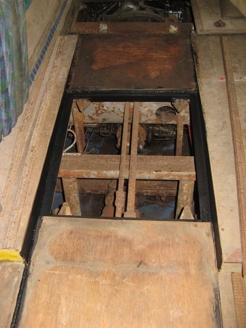 A day of steady rain precluded any useful outdoor activity, so I was allowed to bunk off to my bus. As the air system was looking pretty good, I decided that a day spent on the wiring would make a suitable change. First was checking continuity from the bus-bars through the stop-light microswitch, which is the only active part of the circuit. A false start on that task was resolved by working out which terminal was for the stop-light and which for the engine stop-solenoid because the wiring sleeves were only partly legible. Fortunately, it proved possible to pull down on the brake pedal lever from beneath the cab floor while probing the junction box, thus avoiding the need for an assistant, and I was rewarded by a beep from my meter. As previously established, there was no connection through the bus to the rear-end lamp cluster wiring. Three wires were therefore run through the chassis - one for offside indicators, one for stop, and the other for tail lights, both sides being energised on a single wire that then loops across to the nearside (through the number-plate lamps). The area behind the rear seat is a nightmare because there are two bulbs for the number-plate and another pair for the reversing light box. That lot must wait for another day, but after making a lash-up for test purposes I was rewarded with a bright glow at the back of the garage when I applied the footbrake, and when I switched on the stop-and-tail lights. The dead-ends of the faulty wiring were coiled neatly and left in the access box in the cab header, the new wires running through from end to end without any joins. Maybe one day the other end of the conduit will see the light of day and I'll route some new wires properly. The indicator casting was closed-up (see image above re driving mirror) and the diffusers fitted. It was a very rewarding sight with the flasher going properly for the first time in thirty years, especially on a gloomy day when they really showed. A warm glow to go home with! The next visit saw a serious start on reinstating the radiator pipes, with new elbows and modifications required for the position of the new radiator. Unfortunately, the top pipe fits very closely to the route past the header tanks, so a cut was made and a 45° bend inserted in place of the original straight coupling. Preparation work was also undertaken for various bits of painting, including the base of the driver's seat, which has now been assembled correctly with the little widget that prevents the support column rotating. Unfortunately, I had not observed that the bottom hose for the radiator was of smaller diameter - only 1¾" - so I was stopped on that particular workflow, pending supplies. The antics of my daughter-in-law ripping-up the floor of a bathroom, laid on 3mm plywood had set off a train of thought about the ramp on the upper saloon floor. I had in stock a sheet of thin Treadmaster flooring, so it needed a cheap underlay to get the correct thickness to match the nosing. Plywood! That in turn made me realise that there was painting and reparation to complete before that could happen, and it just happened that the floor traps were all open and ready for inspection. Jeepers, what a mess! Corrosion of the framing was quite advanced, and a couple of small holes had appeared. Curious, really, but I seem to recall that the aluminium wheel-arch was damaged, and probably prone to leaking in wet conditions. I couldn't find any such weakness, and I have memories of patching it with some GRP. First-off, remove the rotten plywood and immovable self-tapping screws (hammer, sideways, ping). Then chisel, scrape and brush at the built-up rust. It soon began to look better, and sandpaper was applied to the metal framing where it is exposed at the side of the ramp (originally the maroon-brown colour used for floor-level trim). I didn't want to start the generator specially, so I deferred tidying the remains of the fixing screws with my angle-grinder. The patch of Treadmaster between the differential and gearbox trapdoors turned out to be completely detached, presumably held down solely by their flanges. Underneath was horrendous. Oil-mist from the engine seemed to have permeated the plywood floor, and dust working inwards from the sides had built up thick, hard ramps so the floor was concave instead of flat. Eventually I had accumulated a couple of pounds of soil, rust and 'tarmac', and felt much better when it was in the bin. So good, in fact, that I ventured under the cab area again to check on the split-pin in the handbrake crank-arm clevis. AWOL! Close examination showed that the replacement pin, possibly from the other end of the operating rod, was too short. I am pretty sure that Maurice gleaned it from MBA545, and was very pleased by its un-worn condition. "So it goes", according to Kurt, who set off back to the drawing-board. While he was away, I broke-out the replacement morse-cable for the accelerator (which has been in stock for well over a decade) and threaded it through temporarily, ready for attachment. It seemed too long at the front bell-crank, so I went home to check my manuals.