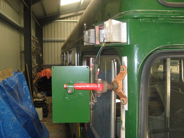 The new silicone radiator hoses arrived promptly, so a session was spent making-up and clipping the various lengths of smaller hose to the bottom of the radiator and the header tank. It all seemed to fit together OK, and by the end there was less of a rat's nest of dangling pipework! The front door solenoid-valve was fixed to its bracket with a long screw, the driving seat was put back together and installed with sufficient screws to be safe temporarily. I have little confidence that I shall not need further access to the bus bars and door electrics before I'm, done! Then there was an ideal spell of weather to cut the grass outside, SP75 is working well with its new carburettor and the estate looks better altogether for its regular attention. After that it was back to the unfortunate problem with the morse cable, and detailed assessment of the fixing positions and lengths. It is a big disappointment that it is not a faithful copy of the original, now long-since scrapped by the supplier, Hindle Controls. I suspect that all can be redeemed by moving backwards the anchor point beneath the cab, but we need experiments with a G-clamp.