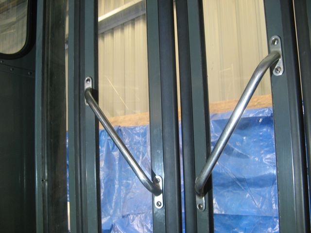 Mucking about at heritage bus running events does not cut the mustard of returning my own bus to service, of course. Therefore, a short visit was made on the following day to install all the screws that I had fettled or accumulated over the Christmas break. It was cold! Gloves are an impossibility on such jobs, and at 3°C with a sprinkling of snow on the higher fields around the garage, any contact with metalwork was an ordeal. However, a full set of 8 countersunk screws were trimmed to length and employed to attach the handrails which were a present from MB90 back in April 2018. The small handles for pulling the doors still require attaching, but they need attention first. The set-bolt in the operating arm was measured, trimmed and inserted with a star-washer, and that was enough for me. Attention continued to the assorted pieces of magnolia-ware in the kitchen, the only place where I can make progress in any semblance of comfort! |